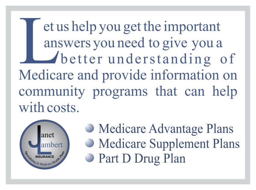 information that you need to help you decide the right course of action when it comes to your Medicare Health Plan. Contact Janet today to learn how she can save you time, money, and confusion.